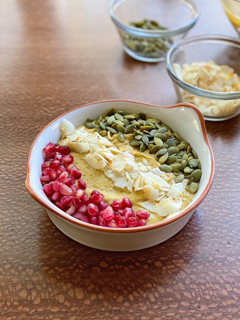 Then we have healthy fats from coconut and vitamins and minerals from pumpkin seeds. And to top it all off, a pop of sweet-tart pomegranate full of antioxidants and key nutrients.