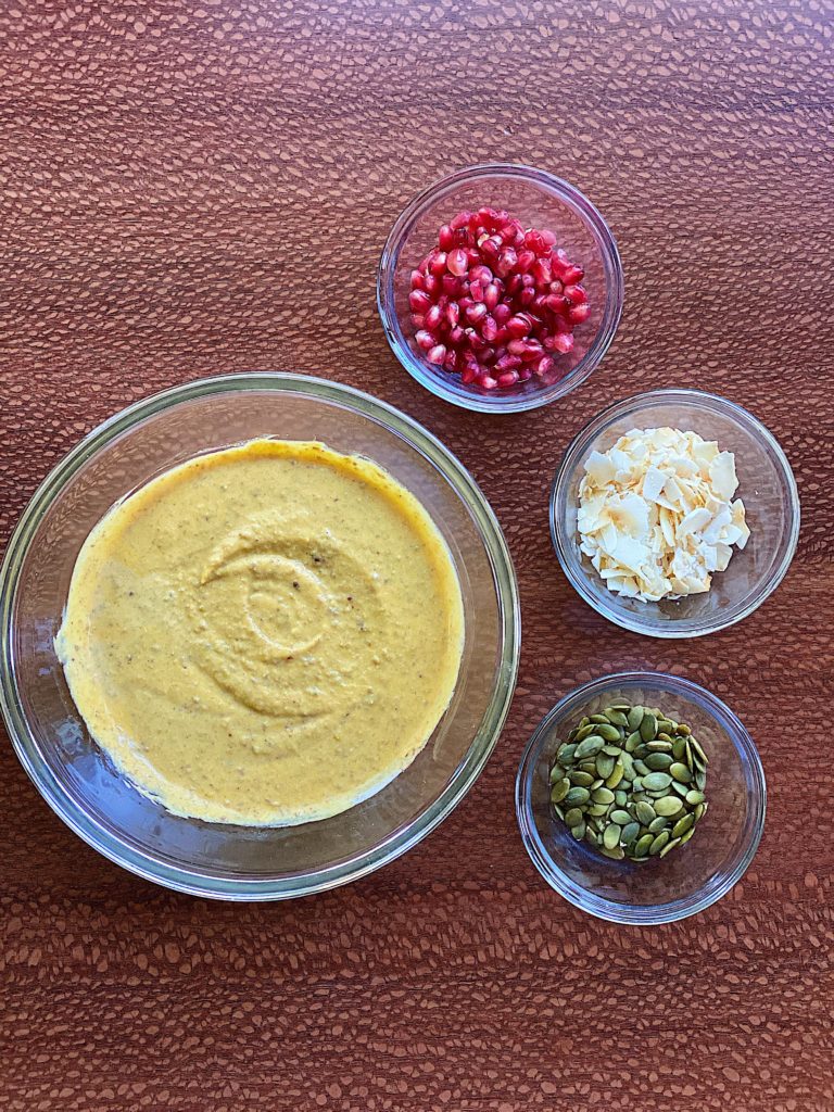I used Lavva yogurt for this recipe, and it is my yogurt of choice when I can find it. This plant-based yogurt provides prebiotic fiber along with vegan probiotics to help build a healthy microbiome. Plus, ground flaxseed and pumpkin are mixed into the yogurt, which both add an extra dose of fiber. Let’s not forget the warm pumpkin spice that also happens to provide antioxidants and anti-inflammatory compounds.